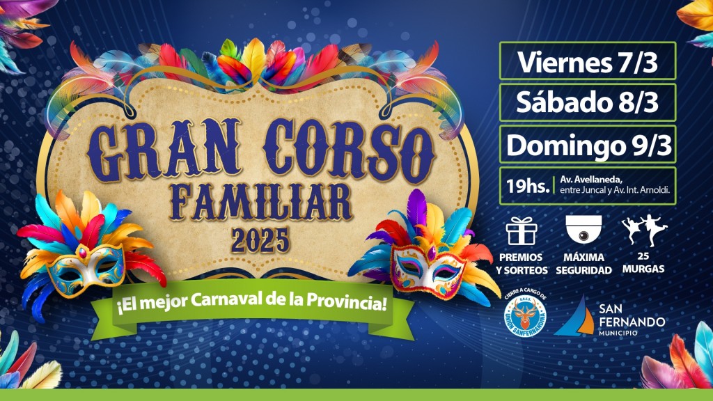 El “Gran Corso Familiar” 2025 presentará un enorme despliegue con las murgas de la ciudad, en reconocimiento a su gran trabajo social en cada barrio para la contención e inclusión, facilitando el acceso de miles de familias a programas de Salud, Medio Ambiente y seguridad en el hogar; además de sostener un fenómeno cultural muy popular en San Fernando.