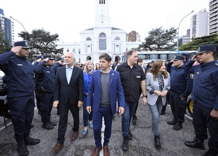 El gobernador de la provincia de Buenos Aires, Axel Kicillof, encabezó la puesta en funcionamiento de 10 patrulleros y 40 motos para fortalecer las tareas de patrullaje en el municipio de La Plata. Fue junto al ministro de Seguridad, Javier Alonso; y el intendente local, Julio Alak