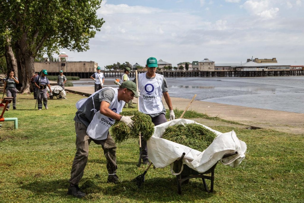 Trabajadores del municipio de Quilmes continúan con la limpieza de la ribera, en una tarea coordinada entre el Estado local y el Gobierno bonaerense. Más de un centenar de cooperativistas y personal municipal ponen en valor toda la costa que incluye desde la rotonda de Otamendi hasta el llamado Punto Selfie Quilmes