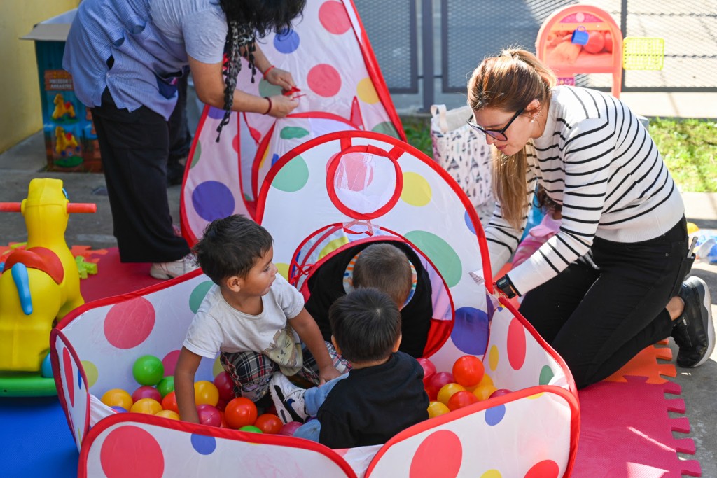 La iniciativa “Vení y Juguemos Juntos” tiene como objetivo contribuir en el fortalecimiento de la comunidad que se encuentra transitando la primera etapa de vida. En este marco, el Gobierno distrital equipa a jardines y centros educativos para que puedan realizar de mejor manera sus actividades.