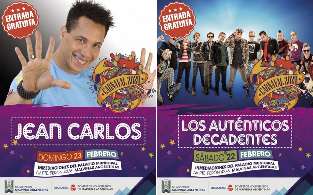Malvinas: Los Auténticos Decadentes y Jean Carlos gratis en las noches de Carnaval