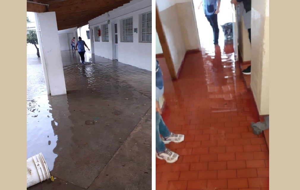 Tras haber realizado reiterados reclamos ante las autoridades del Consejo Escolar, la Directora de la institución y concejala Mónica Solanille (Frente de Todos), denunció que los docentes corren riesgo de electrocución. Debido a la intensa lluvia y a la falta de limpieza de los desagües, el edificio amaneció inundado de agua