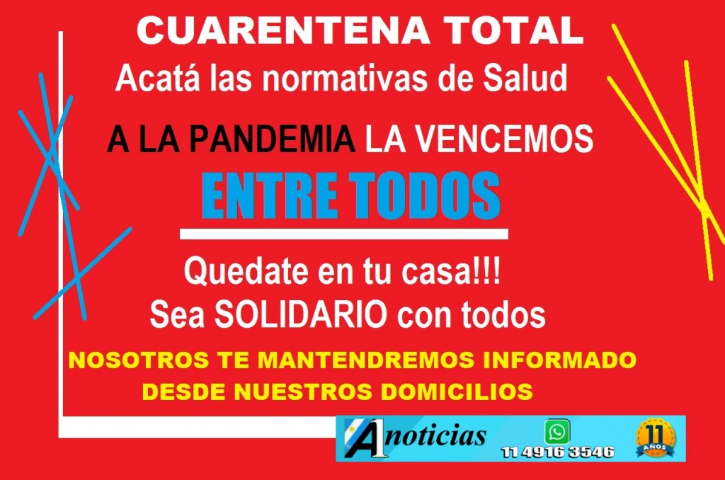 (CABA, 19.Mar.2020 / A1 Noticias) A PARTIR DE LAS 0 DE MAÑANA TODOS LOS ARGENTINOS DEBERÁN SOMETERSE A AISLAMIENTO SOCIAL PREVENTIVO Y OBLIGATORIO: TODOS TIENEN QUE QUEDARSE EN SUS CASAS