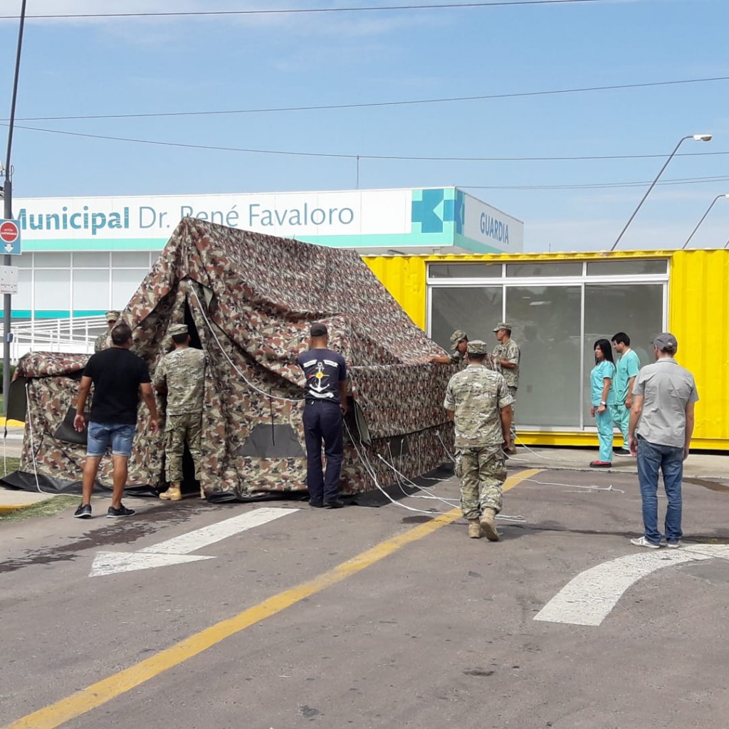 Por otro lado, se colocó una carpa que se empleará como sala de recepción, en este caso con la colaboración activa de la Armada Argentina. Las tareas fueron desplegadas con la presencia de la Secretaría de Salud municipal, Rosana Núñez, personal del Hospital René Favaloro y colaboradores, junto con los efectivos de la fuerza.