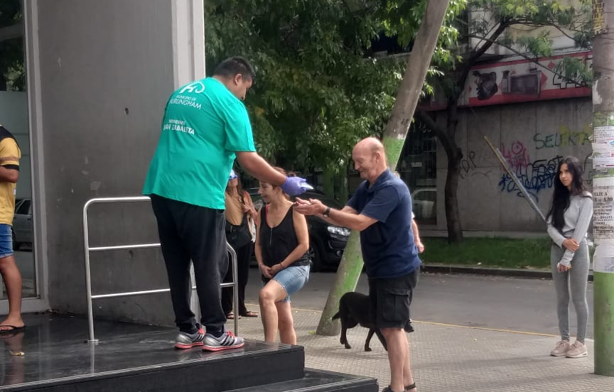 Además, se asisten a los adultos mayores que acuden al Banco Piano para cobrar sus jubilaciones, indicándoles la distancia a la que deben permanecer entre sí, y entregándoles alcohol en gel.