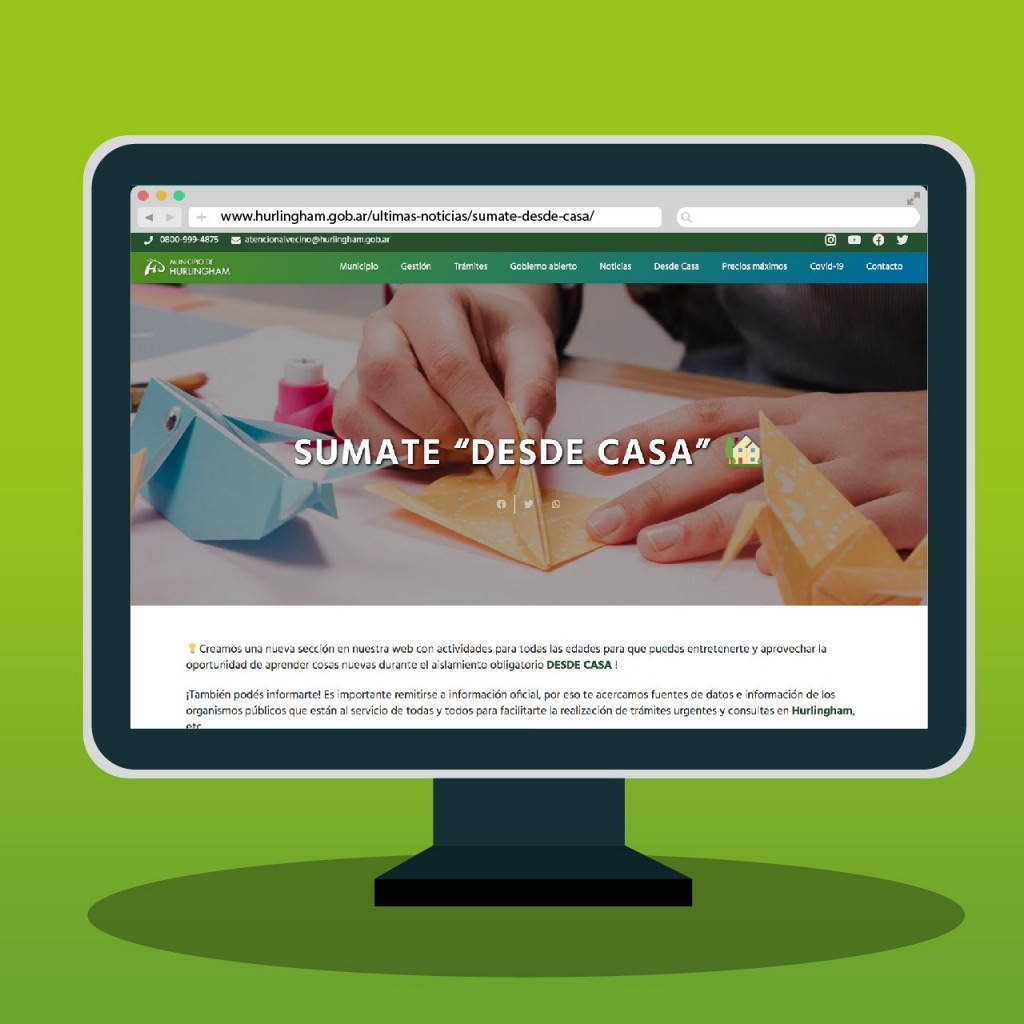 Con el objetivo de mantener a los vecinos informados y conectados, y continuar concientizando acerca de la importancia de permanecer en casa en el marco del aislamiento social, preventivo y obligatorio decretado por el presidente Fernández para frenar el avance del coronavirus, el Municipio presentó “Hurlingham desde Casa”, una plataforma digital