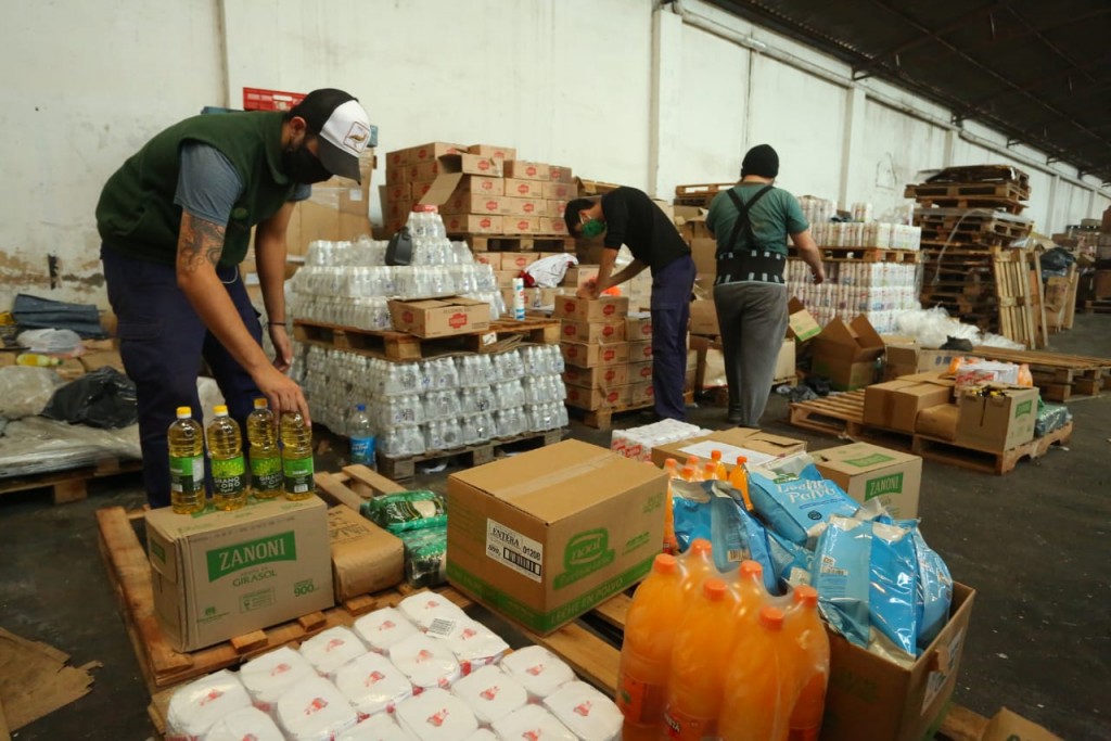 (Esteban Echeverria, 23.Abr.2020 / A1 Noticias) "Este centro está focalizado especialmente en la distribución de módulos alimentarios que contienen 10 productos esenciales y que complementamos con frutas, verduras y hortalizas para una dieta equilibrada", sostuvo Gray, en el depósito de Monte Grande.