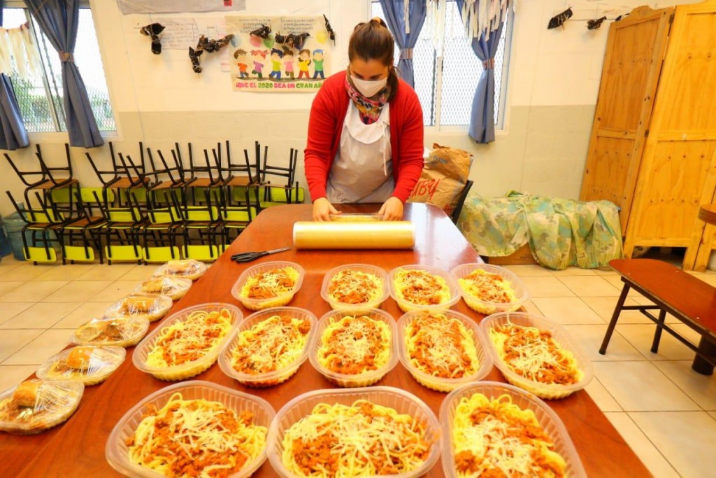 “Antes las viandas no se hacían, porque los chicos iban a los Centros y almorzaban allí. Pero con la disposición que indica que no puede haber muchas personas reunidas en un mismo lugar, se decidió optar por la entrega de viandas en los barrios. Las viandas son muy ricas y los menús van variando. A veces hay pastel de carnes, otros días tallarines con salsa, guiso de lenteja, y así van rotando las diferentes elaboraciones”, detalló.