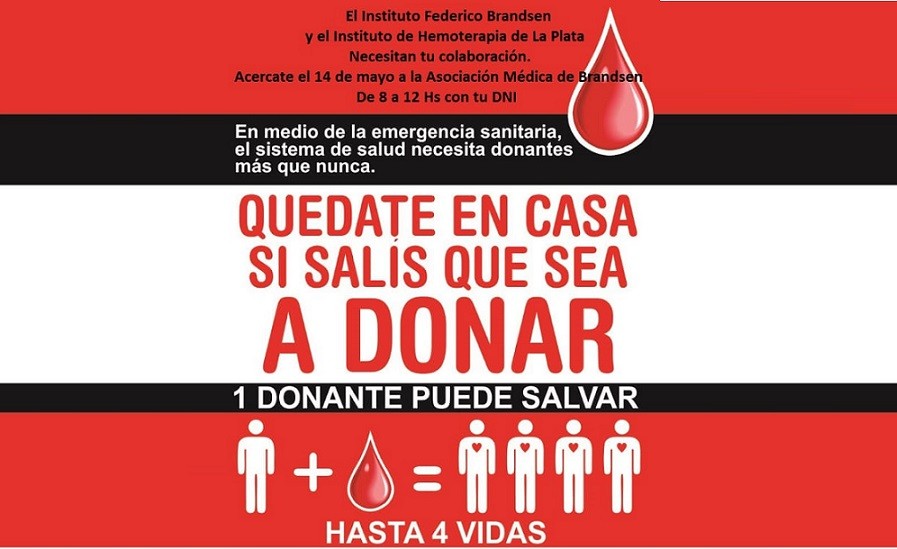El próximo jueves 14 de mayo de 8 a 12 horas, en la sede de la Asociación Médica, se llevará adelante una nueva colecta de sangre promovida por el Instituto Federico Brandsen, con la colaboración del Hospital Municipal Francisco Caram