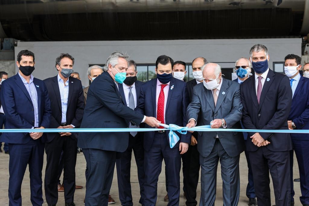 (S. del Estero, 21.May.2020 / A1 Noticias) Junto al mandatario provincial, Gerardo Zamora, el presidente inició su visita en el departamento de Robles, donde realizó el corte de cinta de Mega Alfalfa Argentina (MAA), una empresa agroindustrial que produce forraje para ganado, para consumo interno y externo.