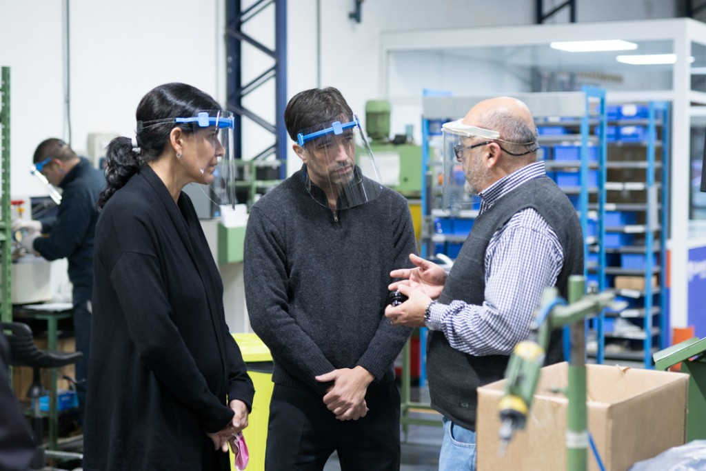 El intendente Franco Flexas, la secretaria de gobierno Ana Paula Cascallar y el secretario de desarrollo económico José Tellería visitaron la fábrica MLH-VERNET, una empresa de repuestos autopartistas ubicada en Los Toldos, que trabaja cumpliendo todos los protocolos sanitarios y que empezó a producir nuevamente luego de 2 meses inactivos por el CoronaVirus