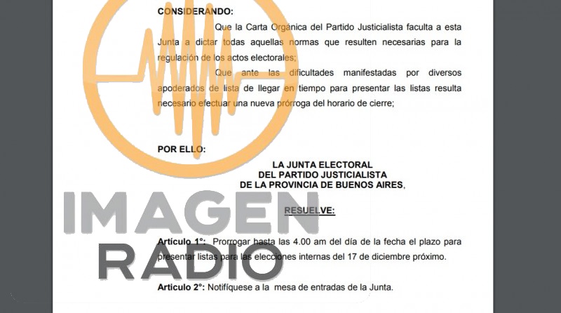 Lo insólito fue la seguidilla de actos resolutivos que emitió la Junta que preside Curto. La Resolución N° 4 –que fue publicada a las 23:00- prorrogó hasta las 2.00 del 17 de noviembre, la presentación de listas, continuó con la N° 5 (horario de la 01:30) para prorrogar hasta las 3.00 horas y la N° 6 que en su artículo 1°: Modifica los plazos del cronograma electoral que a continuación se detallan: Martes 21.11.17 Comienza exhibición de listas de candidatos para su impugnación Jueves 23.11.17 Finaliza el plazo de exhibición de listas de candidatos.