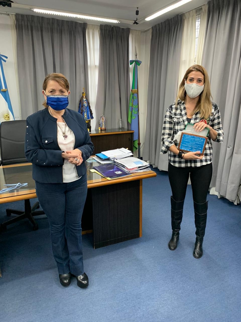 (Pte. Perón, 01.Jun.2020 / A1 Noticias) “Con Florencia (Casamiquela) estuvimos hablando sobre la difícil situación económica que atraviesan nuestros clubes y la posibilidad de una ayuda económica vinculada a subsidios para estas instituciones que cumplen un rol fundamental de contención social”, explicó la jefe comunal, quien entregó a la funcionaria nacional una placa recordatoria por su visita de trabajo.