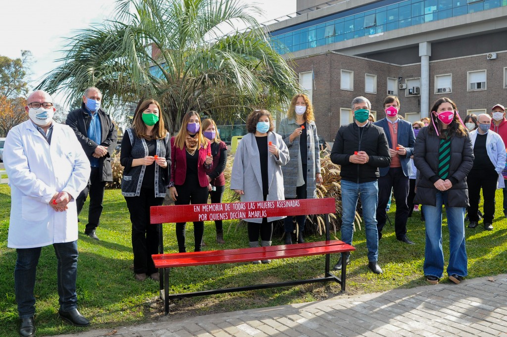 En el marco del quinto aniversario del #NiUnaMenos, el intendente de Hurlingham, Juan Zabaleta, junto a la ministra de las Mujeres, Políticas de Género y Diversidad Sexual de la provincia de Buenos Aires, Estela Díaz, y al jefe comunal de Morón, Lucas Ghi, acompañó la inauguración del Banco Rojo en el Hospital Nacional Posadas, en un acto que contó con la participación de su interventor, Alberto Maceira, personal médico y trabajadoras del nosocomio. La iniciativa Banco Rojo forma parte de una campaña internacional que simboliza de la lucha pacífica contra los femicidios y la violencia de género
