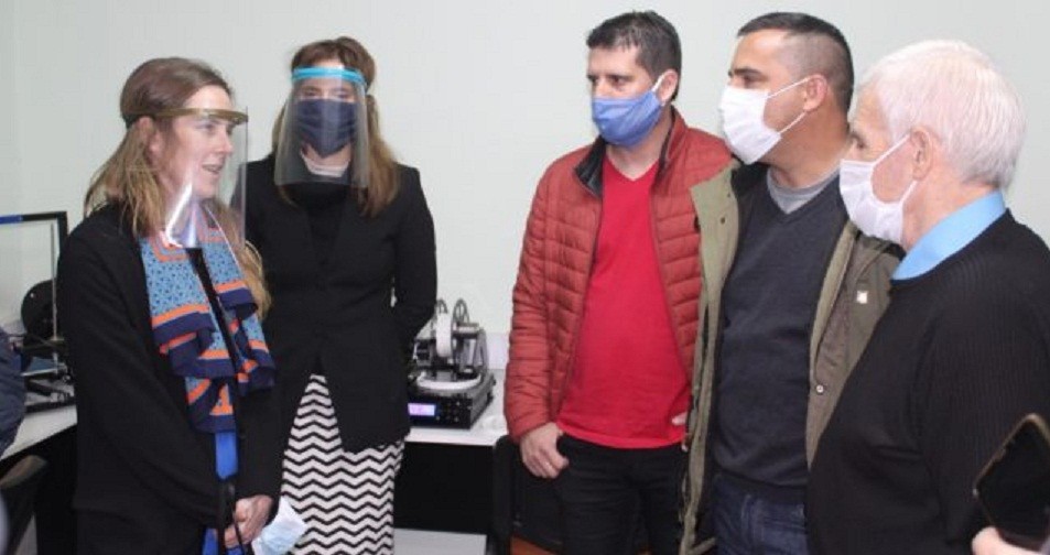 El CFP 403 colabora en la presente etapa de aislamiento preventivo obligatorio social, con la fabricación de máscaras de seguridad facial utilizando la tecnología de impresión 3D, para los Centros de salud zonales y realizó una importante donación de máscaras al Ministerio de Salud de la provincia juntamente con la Fundación Bapro y el Ministerio de Trabajo.