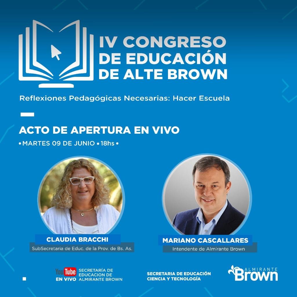 Con el objetivo de acompañar a las y los docentes en su formación, en el marco de la pandemia de Coronavirus y el contexto de aislamiento y distanciamiento social, el próximo martes 9 de junio arranca el IV Congreso de Educación de Almirante Brown, en una versión totalmente virtual