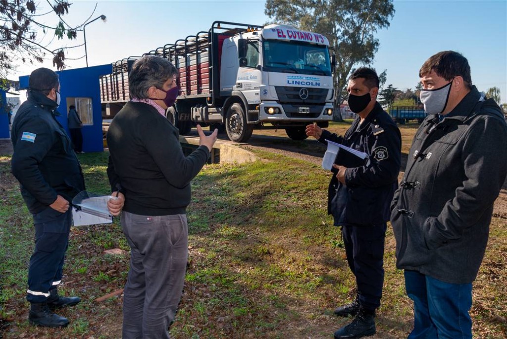 Integrantes de la secretaría de Control Ciudadano del Gobierno de Junín y de la Policía Ecológica supervisaron la efectiva aplicación de los protocolos en los frigoríficos de la ciudad, como así también, las medidas preventivas que se toman para empleados y transportistas