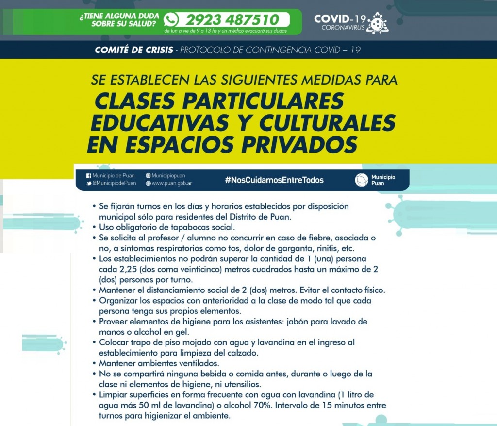 Puan: Habilitan las clases particulares educativas en espacios cerrados y actividades al aire libre