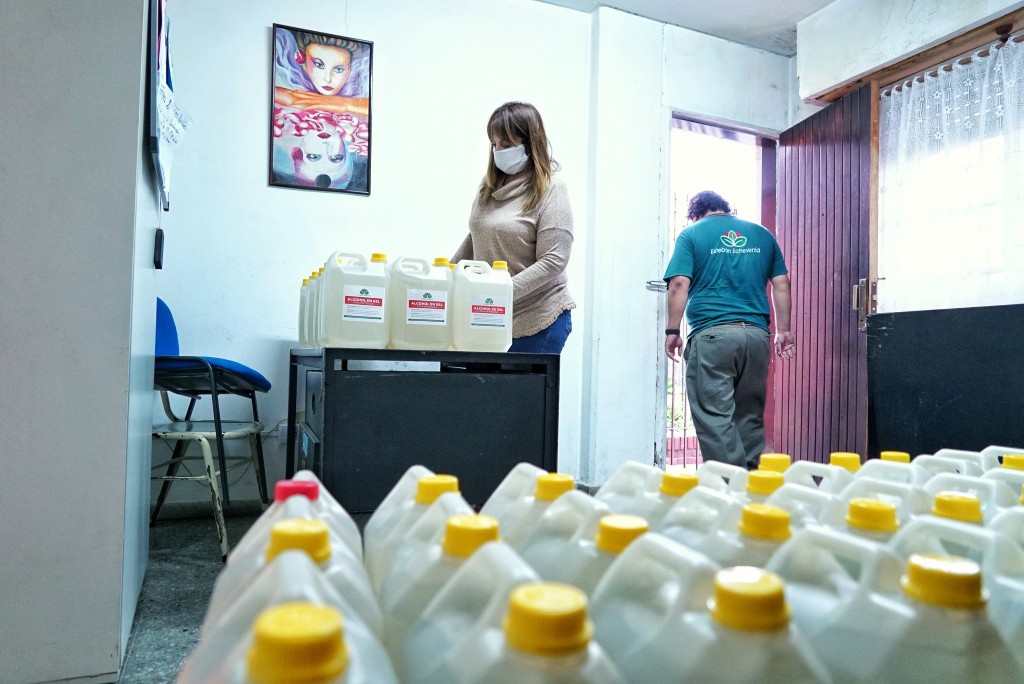 Esteban Echeverría: El Municipio entregó 800 litros de alcohol en gel a instituciones educativas