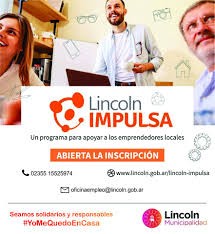 La Municipalidad de Lincoln informa que el martes 30 de junio cierra la inscripción para la presentación de proyectos para el Programa “Lincoln Impulsa”, cuyo objetivo es fomentar el desarrollo productivo de nuestra ciudad mediante el financiamiento económico a emprendedores locales