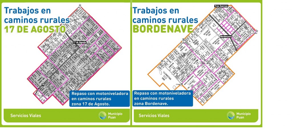 (Puan, 30.Jun.2020 / A1 Noticias) En esta oportunidad, se realizó un repaso con motoniveladora en caminos rurales de Bordenave y 17 de Agosto para mejorar su transitabilidad. Para brindar una mejor información al productor agropecuario se digitalizaron los mapas que permiten graficar los trabajos realizados hasta el momento en las zonas mencionadas.