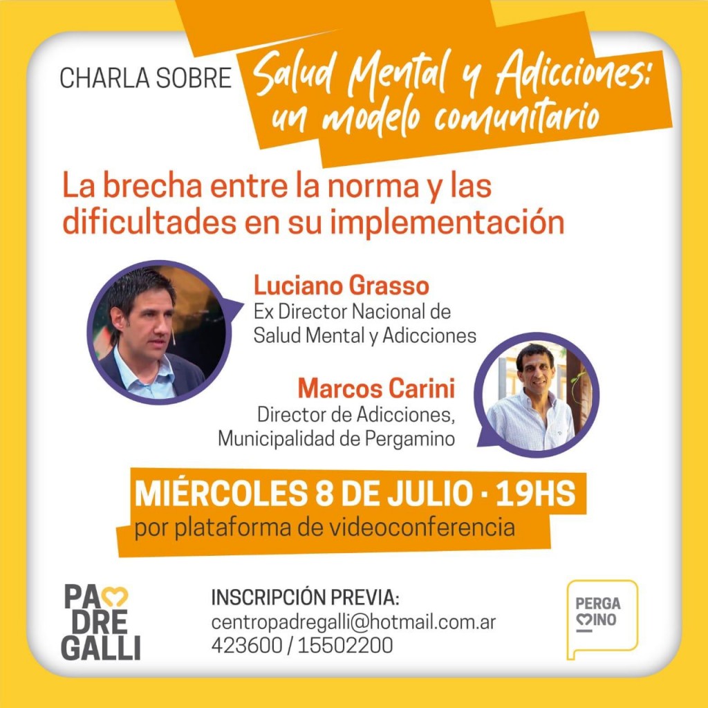 (Pergamino, 03.Jul.2020 / A1 Noticias) El orador de la jornada será Luciano Grasso, psicólogo, magister en salud mental comunitaria, y quien hasta hace poco tiempo se desempeñó como director nacional de Salud Mental y Adicciones. El moderador del encuentro será el director de Adicciones de la Municipalidad de Pergamino Marcos Carini.