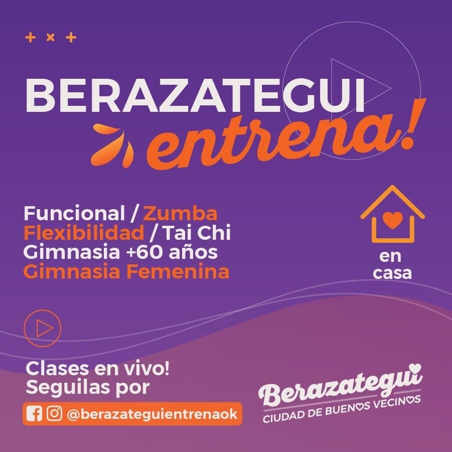 Gimnasia, zumba y tai chi son solo algunas de las opciones que “Berazategui Entrena” ofrece para que los vecinos hagan ejercicios en sus casas. Es que ante la imposibilidad de salir a realizar actividad física por la pandemia de coronavirus y su consecuente aislamiento obligatorio, la Municipalidad de Berazategui lanzó clases deportivas online gratuitas a través de Facebook e Instagram