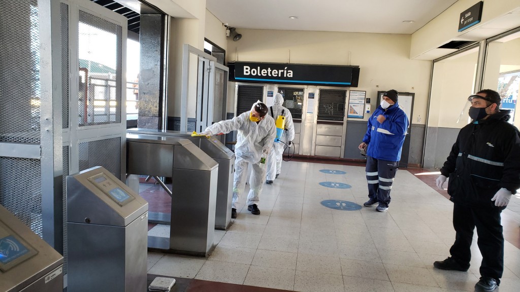 (Berazategui, 13.Jul.2020 / A1 Noticias) Se fiscalizó la higiene de la boletería, baños, molinetes y otros espacios del lugar, además del distanciamiento social entre los pasajeros, tanto dentro de las formaciones como en los andenes.