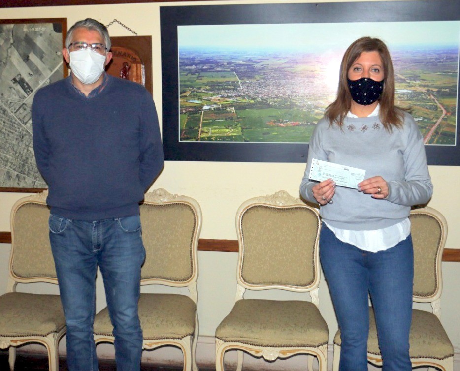 (San Andrés de Giles, 14.Jul.2020 / A1 Noticias) La finalidad de esta reunión fue la entrega de un cheque que aportará los fondos necesarios para la terminación de la obra de construcción de dos aulas y ampliación del Taller de la Escuela de Educación Secundaria Técnica N° 1 "Jorge Maciel".