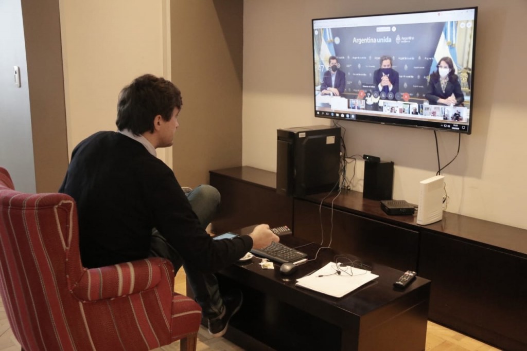 (Morón, 07.Ago.2020 / A1 Noticias) Esta mañana el intendente de Morón Lucas Ghi participó vía videoconferencia de la presentación del Plan Nacional de Suelo Urbano, encabezado por el jefe de Gabinete Santiago Cafiero junto a los ministros del Interior Wado de Pedro, y de Desarrollo Territorial y Hábitat, María Eugenia Bielsa, desde el Salón Norte de la Casa Rosada, y la participación a distancia de jefes comunales de todo el país.