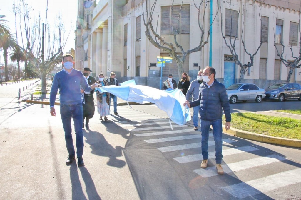 Este lunes, con motivo de cumplirse un nuevo aniversario de la muerte del General San Martín, el intendente Marcos Pisano realizó el izamiento de la Bandera Nacional en el mástil central