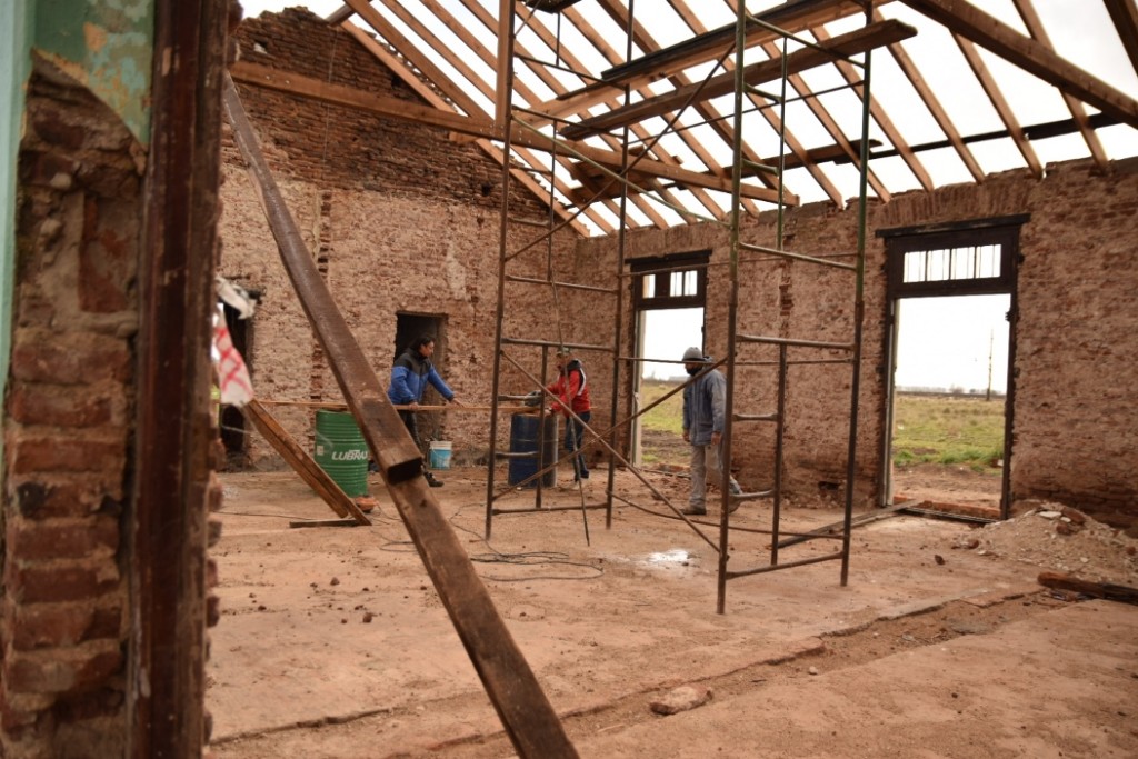 Siguen adelante los trabajos en una de las casas del complejo del Ferrocarril en la ciudad de Lobería, ubicada en calle Raggio al 300, para su restauración y ampliación con el objetivo de que funcione allí la Escuela de Estética Nº 1
