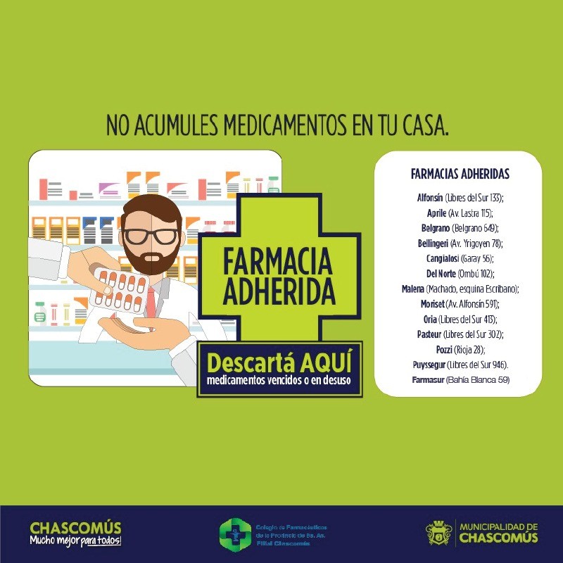(Chascomús, 25.Ago.2020 / A1 Noticias) “Tenemos que reflotar la campaña sobre el correcto descarte de los medicamentos vencidos o en desuso, que es a través de las farmacias. En tal sentido, desde el Colegio, comenzamos nuevamente con la difusión del programa desarrollado en conjunto con el Municipio a través de las redes sociales”, comentó.