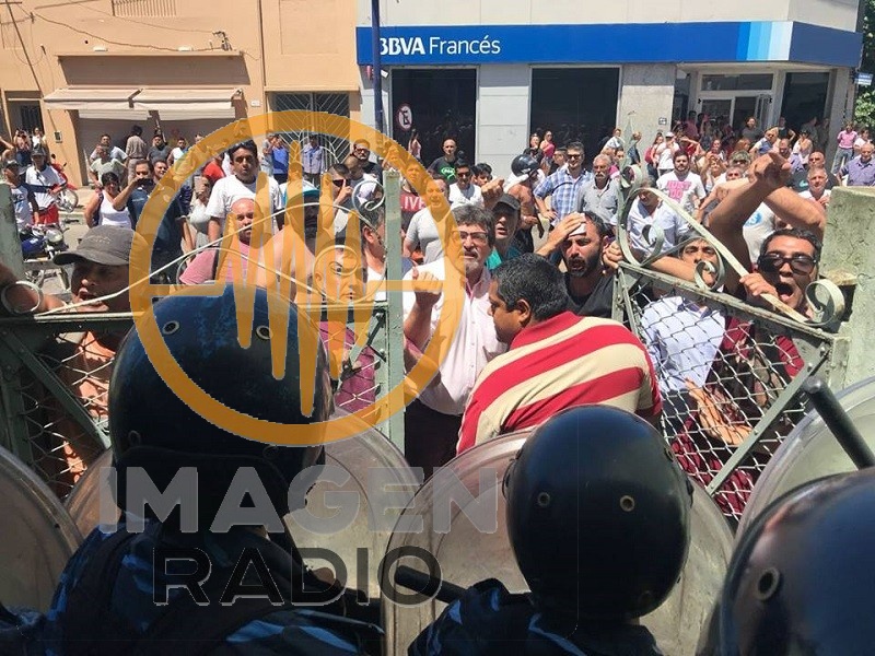 Los incidentes frente al edificio terminaron frustrando la reunión y efectivos de infantería reprimieron con gas pimienta, lo que produjo un largo enfrentamiento donde resultaron heridos el concejal Santiago Rodríguez (Unidad Ciudadana) y el ex funcionario Santiago Delia.