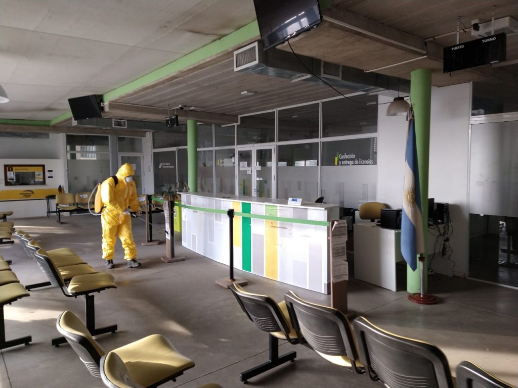 (Pergamino, 04.Sep.2020 / A1 Noticias) En el día de hoy estuvieron desinfectando las oficinas de Licencias de Conducir que se encuentran cerradas al público a raíz de que se diera a conocer un caso positivo de COVID-19.
