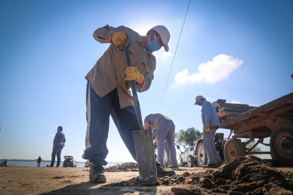 En la continuidad de los trabajos que se cumplen todos los días para contar con nuevo espacio para sampedrinos y turistas, poniendo en valor la ribera de Vuelta de Obligado, personal de la Secretaría de Obras Públicas, Parques y Jardines, y de la Delegación Municipal de la localidad está efectuando una importante tarea en la parquización de la zona