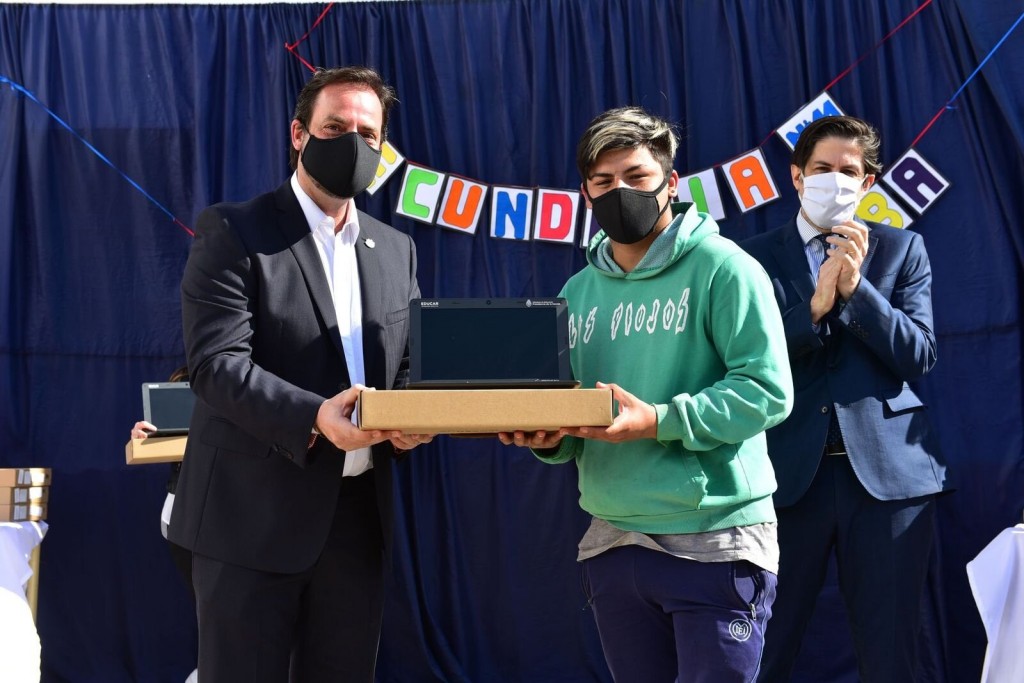 En la Escuela Nº 11 Carlos Fuentealba de Garín y bajo estrictos protocolos sanitarios, el intendente Ariel Sujarchuk junto con el ministro de Educación de la Nación, Nicolaìs Trotta, entregaron 51 netbooks del programa Aprender Conectados, destinadas a estudiantes de 4º año de escuelas secundarias