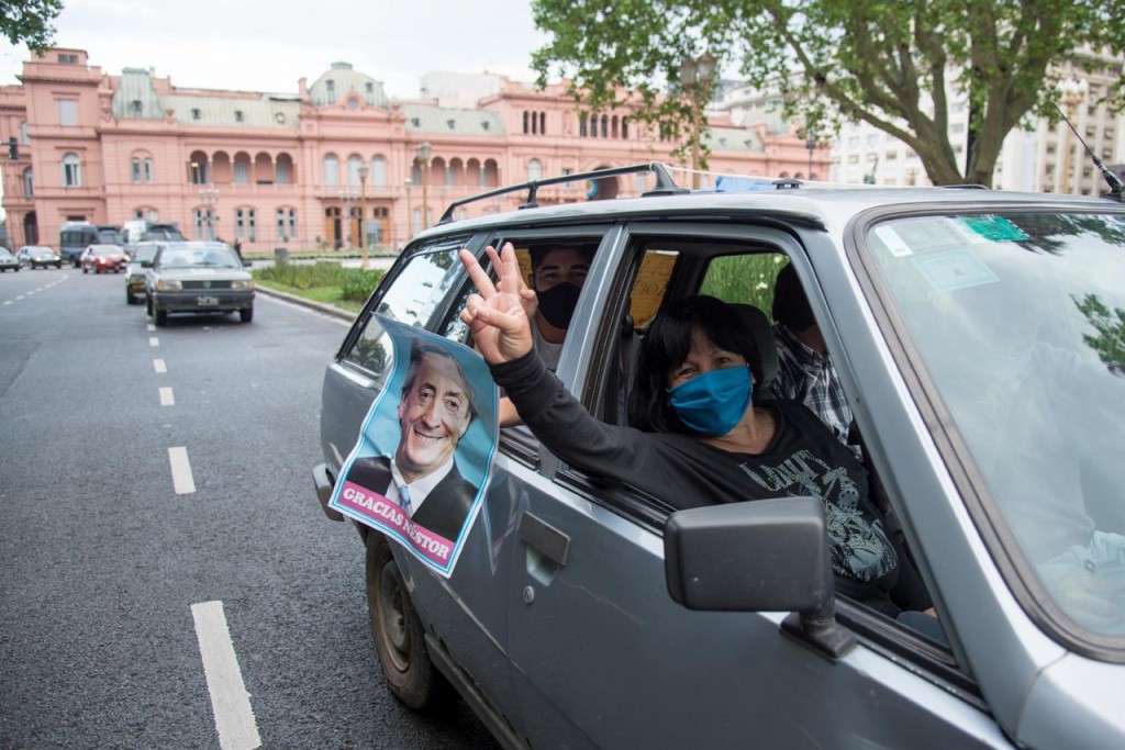 (Quilmes, 26.Oct.2020 / A1 Noticias) Durante el fin de semana marchó desde Quilmes una columna de más de 150 autos para hacer un reconocimiento al ex presidente Néstor Kirchner dando unas vueltas por la histórica plaza con carteles con la cara de Néstor y banderas argentinas.