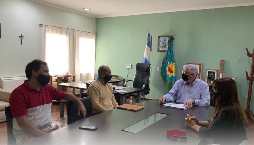 Durante la mañana de hoy martes, el intendente Osvaldo Dinápoli junto al Secretario de Cultura, Deporte y Educación, Rodrigo Berte, mantuvieron una reunión con el Jefe Distrital de nuestra localidad, Felipe Tebes, y con la Jefa Regional, Lorena Silva