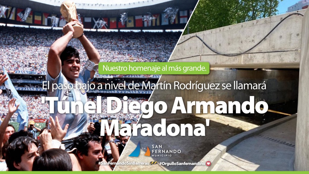 “Será el homenaje del pueblo de San Fernando al mejor jugador de la historia”, explicó el Jefe Comunal en sus redes sociales de Facebook e Instagram, sobre la decisión de llamar ‘Diego Armando Maradona’ al 7mo Túnel sanfernandino. “Enviaremos al Concejo Deliberante el proyecto de ordenanza para su aprobación”, confirmó Andreotti.