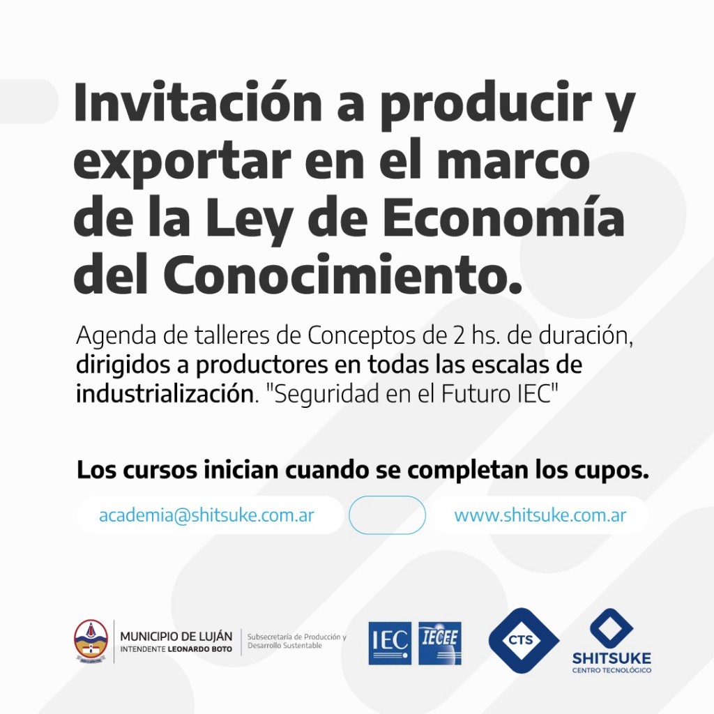 (Luján, 26.Nov.2020 / A1 Noticias) Estos cursos, de 2h de duración, son dirigidos a productores en todas las escalas de industrialización, en el marco de Ley de Economía del Conocimiento, con el propósito de internalizar el uso de normas técnicas que definen características de los productos, mediante la certificación internacional IEC- IECEE.