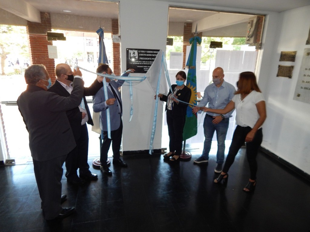 Posteriormente, las autoridades se dirigieron a la entrada del Concejo Deliberante y de la Municipalidad, donde descubrieron dos placas alusivas al aniversario y, finalmente, en el Anfiteatro Municipal se desarrolló un sencillo acto -tomando los recaudos según protocolo sanitario- en el que se entonaron las estrofas del Himno Nacional Argentino y se pidió un minuto de silencio en memoria del Astro del Fútbol.