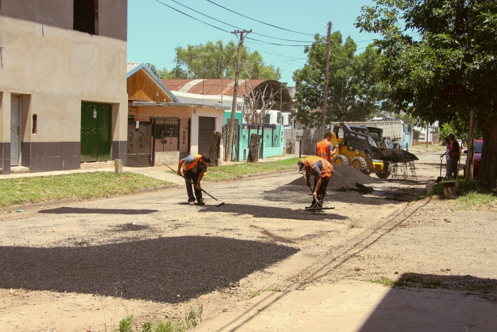 Además, el equipo perteneciente a la Secretaría de Servicios Públicos llevó a adelante tareas de bacheo con asfalto en caliente sobre calle Pedro Martini en Barrio Pitrau y trabajos de tomado de juntas en barrio Centro, como la acción que se observó sobre calle Belgrano y 25 de mayo.