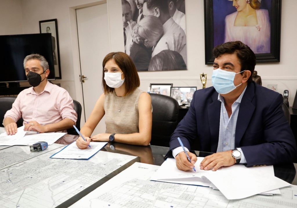 (La Matanza, 03.Dic.2020 / A1 Noticias) El intendente de La Matanza, Fernando Espinoza, mantuvo una reunión con la secretaria de Inclusión Social del ministerio de Desarrollo Social de la Nación, Laura Alonso, y el ministro de Desarrollo de la Comunidad de la provincia de Buenos Aires, Andrés Larroque, para la firma de un convenio que financiará acciones que garanticen la seguridad alimentaria de personas en condición de vulnerabilidad social y una inversión de, aproximadamente, 50 millones de pesos que hará la provincia de Buenos Aires para la construcción de tres nuevos SUM (salón de usos múltiples para eventos educativos, culturales y deportivos) en La Matanza.