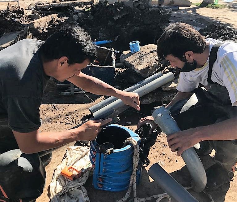 (Luján, 04.Dic.2020 / A1 Noticias) Las tareas realizadas durante el jueves consistieron en la colocación de un tramo de caño provisorio que permitiera empalmar la red y rehabilitar el servicio, con el propósito de que los vecinos más afectados contaran nuevamente con suministro para llenar sus tanques.