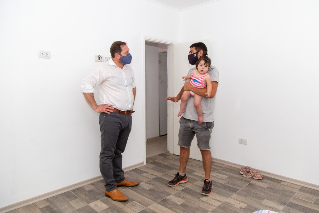 (Lincoln, 10.Dic.2020 / A1 Noticias) En ese marco, el intendente municipal, Salvador Serenal, acompañado por integrantes de la Dirección de Viviendas, fue el encargado de entregar en mano las llaves de la casa a Vanesa Muñoz y Agustín Herrera, quienes se convirtieron en legítimos propietarios.