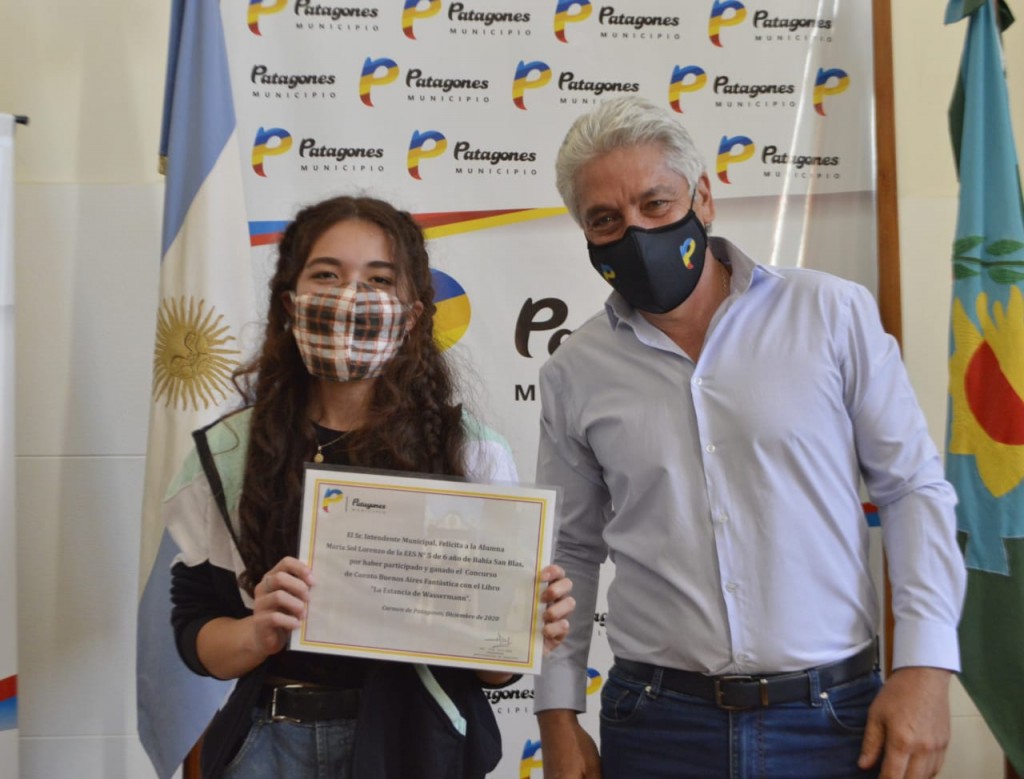 En la jornada de hoy, el Intendente Ing. José Luis Zara, entregó en su despacho un reconocimiento a la alumna, María Sol Lorenzo, de la Escuela de Educación Secundaria Nº 5, de Bahía San Blas, quien formará parte del libro con la obra “La estancia de Wassermann”