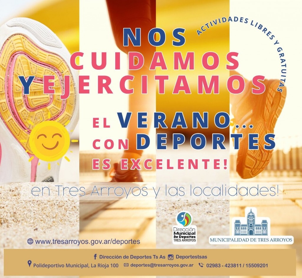 La Municipalidad de Tres Arroyos, a través de la Dirección de Deportes informa que el lunes 04 de enero comienza el Programa de Verano "Nos Cuidamos y Ejercitamos" en Tres Arroyos, y las localidades balnearias