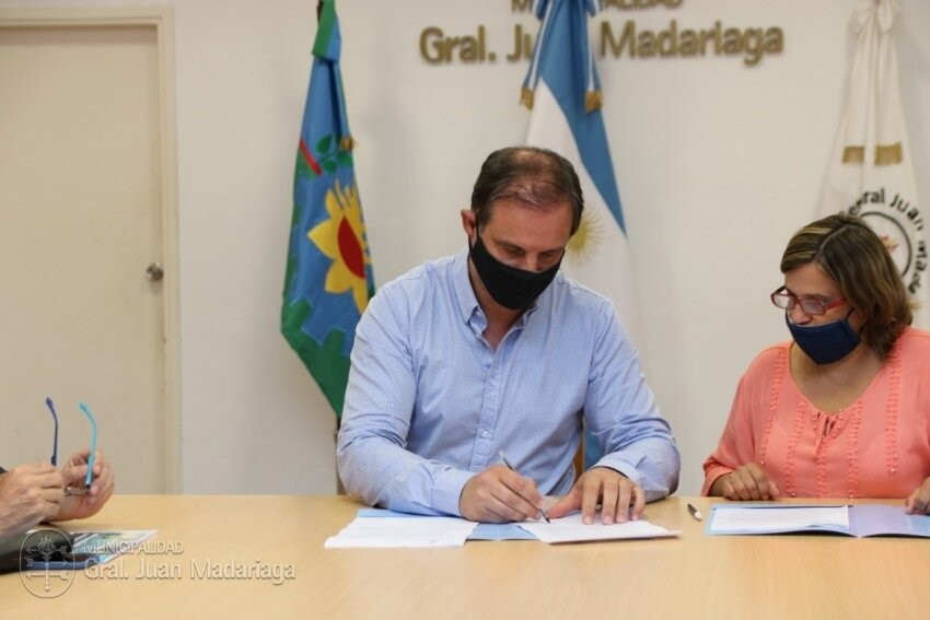 (Gral. Madariaga, 08.Ene.2021 / A1 Noticias) El intendente, Carlos Esteban Firmó el convenio con la empresa a la que se le adjudico la obra de repavimentación de la Av. Tuyú que se ejecutará con el Fondo de Infraestructura Municipal de la Provincia y el asfaltado de la calle 8 entre 31 y 37 que se hará con el Fondo Educativo.