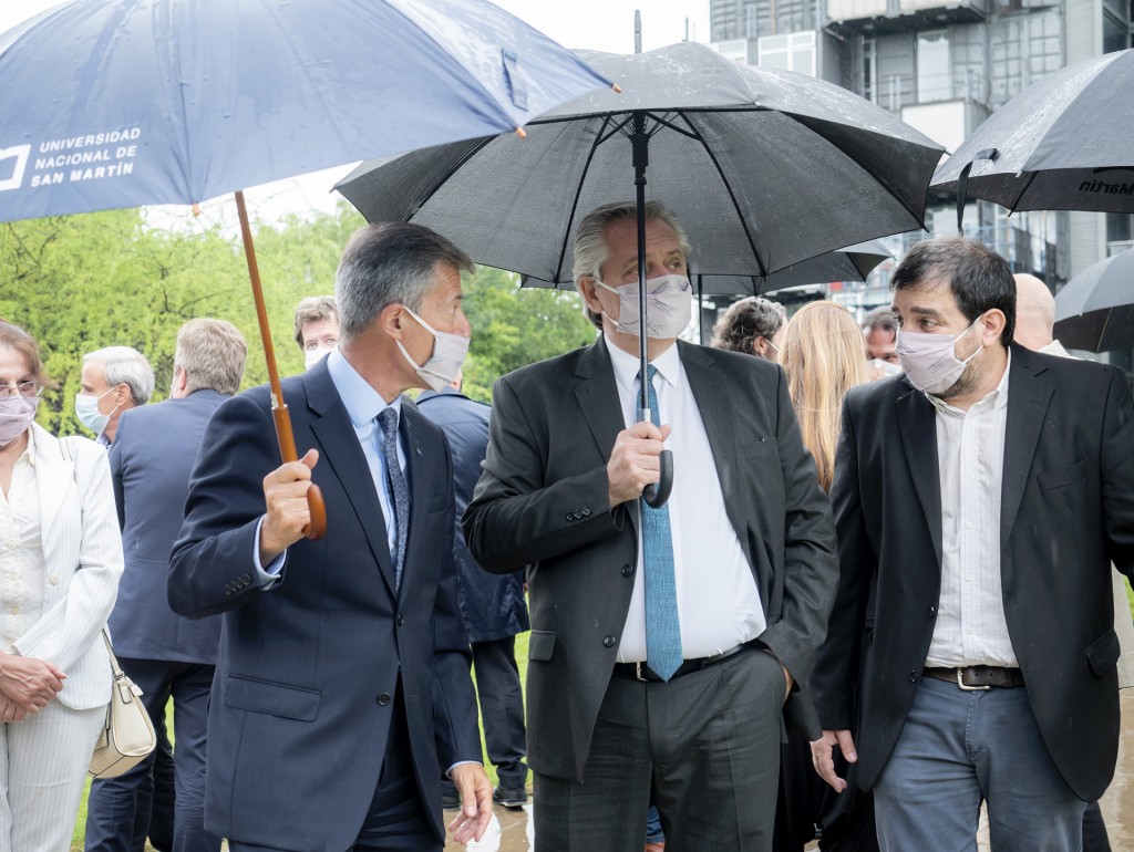 También participaron de la visita el jefe de Gabinete, Santiago Cafiero, el ministro de Salud, Ginés González García, su par de Ciencia, Tecnología e Innovación, Roberto Salvarezza, y el rector de la UNSAM, Carlos Greco.